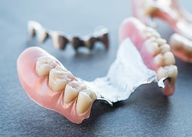 一口に入れ歯と言っても種類は多いのですが、大きく分けるとプラスチック主体の構造の入れ歯(レジン床)と金属主体の構造の入れ歯(金属床)の2種類に分けられます。