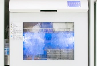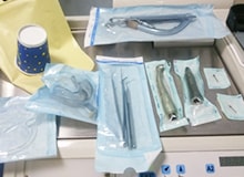 大学病院のマニュアルに沿った高圧滅菌、材質によって薬液消毒を行ったあと、個別にパックし滅菌カストで保管しています。(切削器具には全て高圧滅菌と個別パックを適用)さらに、ディスボーザブル(使い捨て)材料や自動滅菌注油機、自動洗浄機を導入することで感染対策を強化しております。