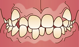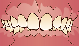 顎と歯の大きさが不調和なため、歯が並ぶためのスペースが不足して、重なってデコボコになっている状態。